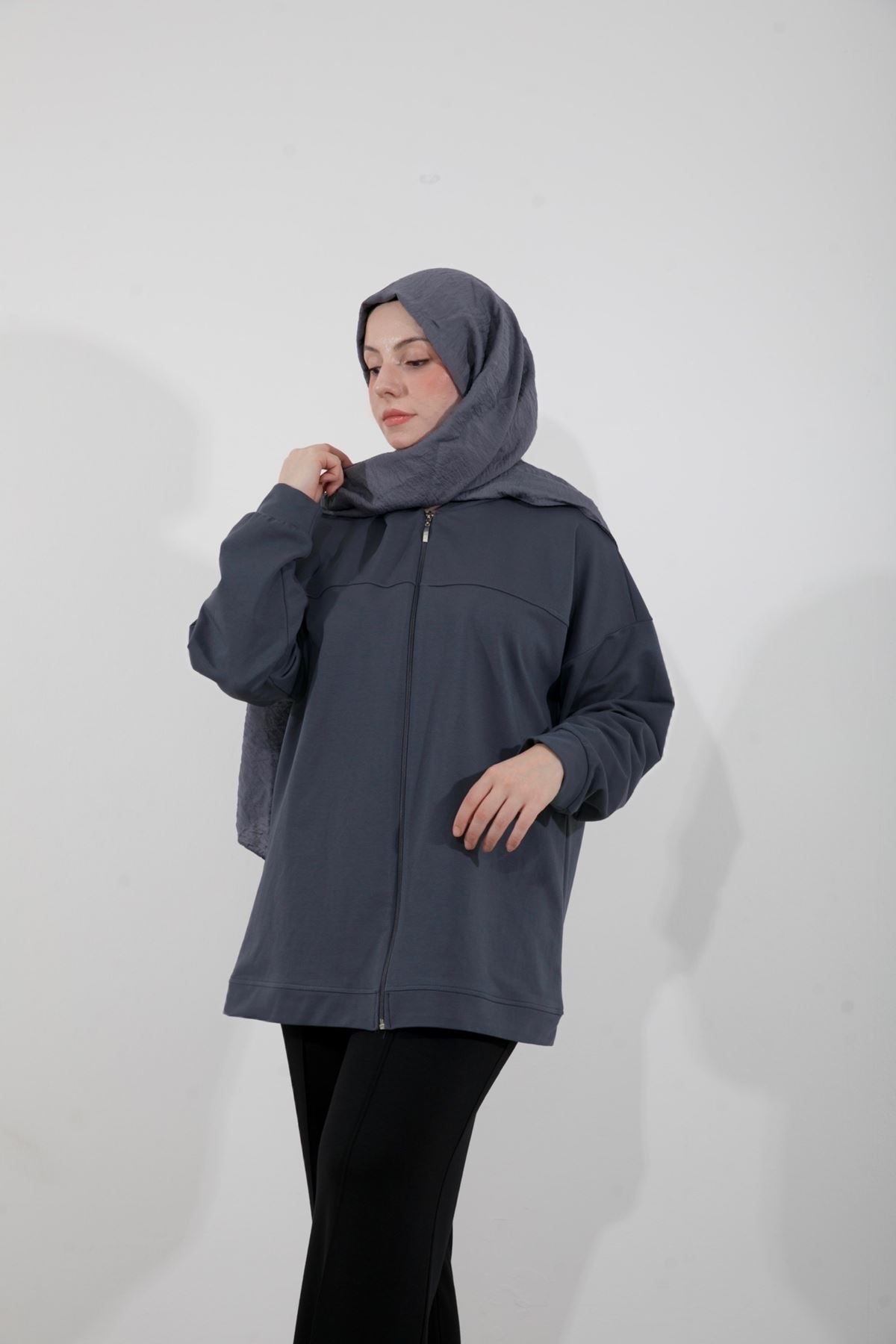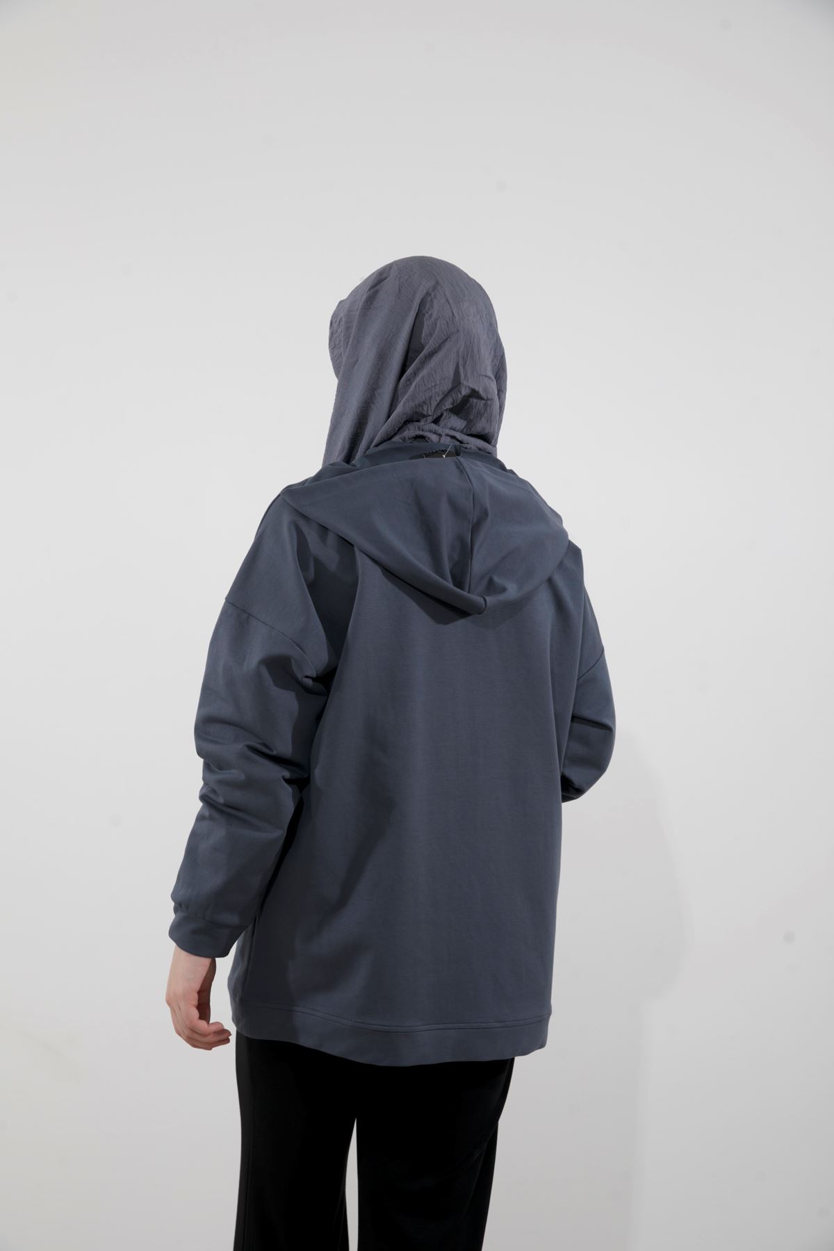 Kapşonlu Fermuar Detay Hırka-Antrasit