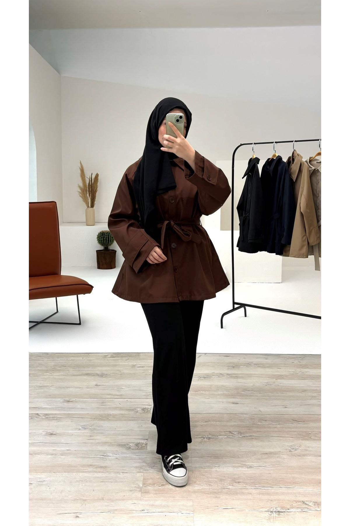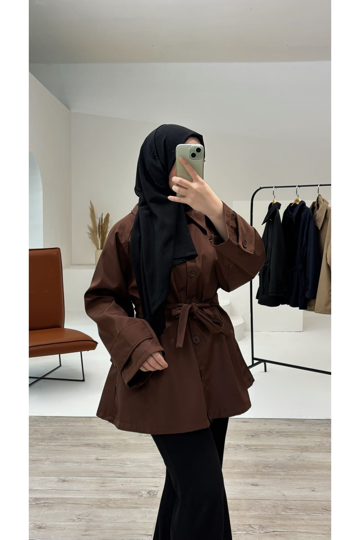Kol Apolet Detay Kısa Trençkot-Kahve