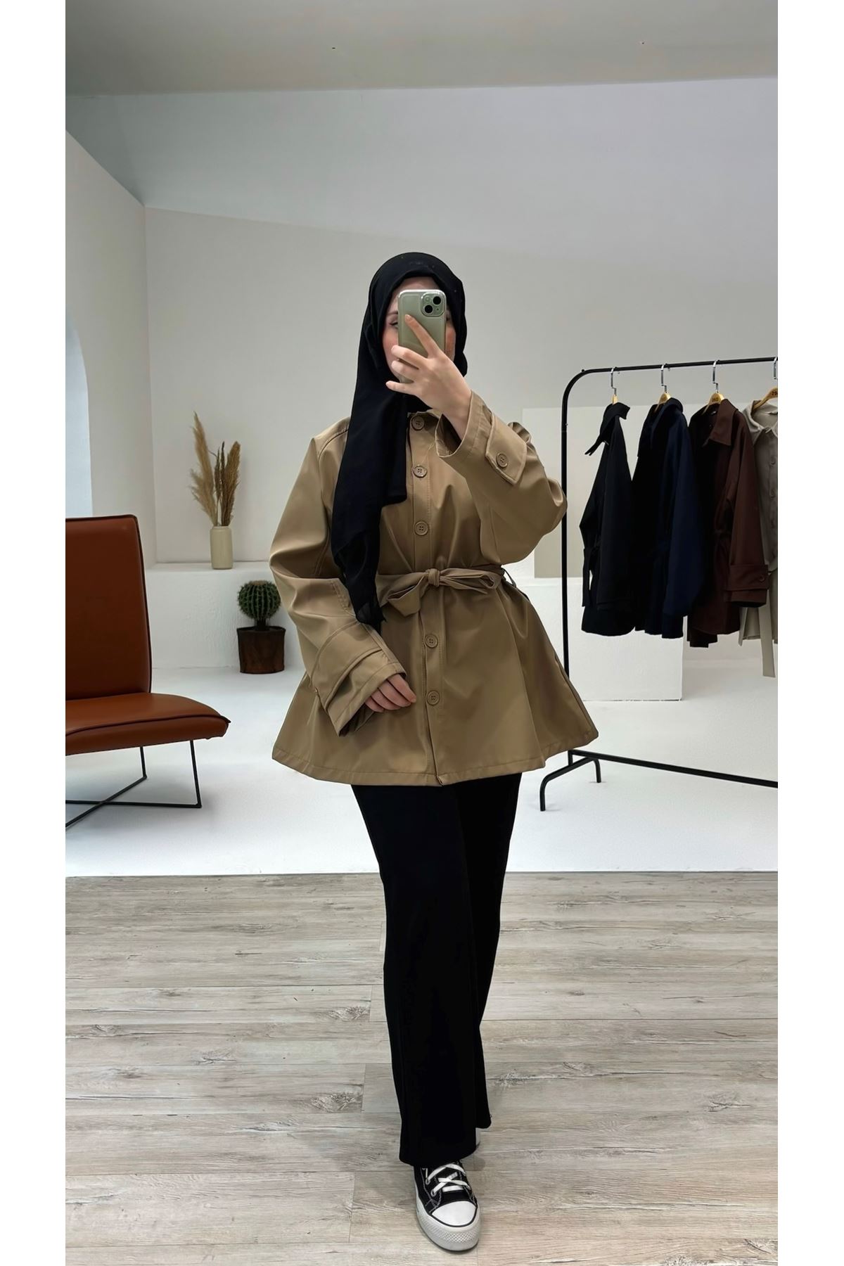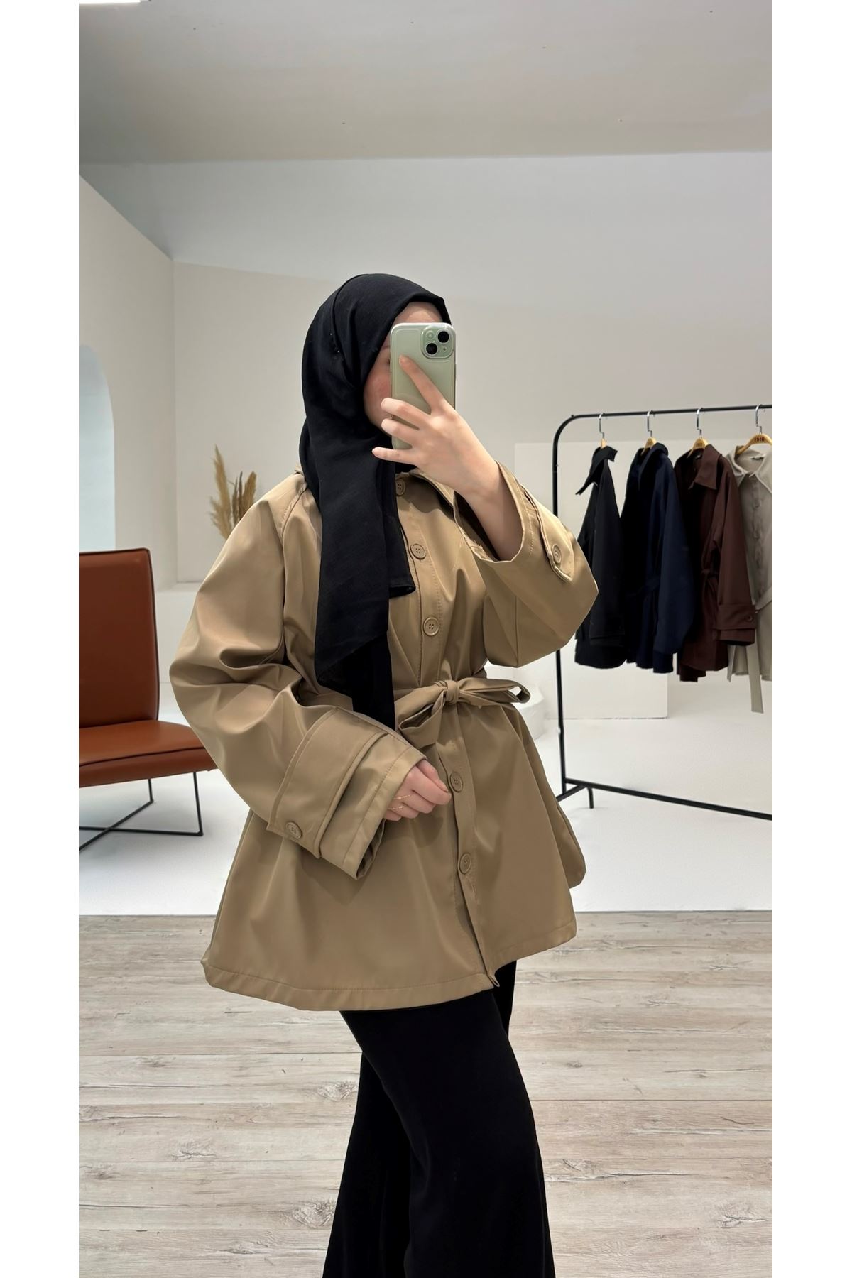 Kol Apolet Detay Kısa Trençkot-Taş
